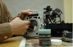 レーシングエンジンをオーバーホールして組み立てる時にはこうやって丁寧にMicrolon Assenbly Lubricantを塗ってやるんですよ。あるときたった一つの部品を塗り忘れて組み上げてテストしたことがあって、見事そのパーツだけがやられていました